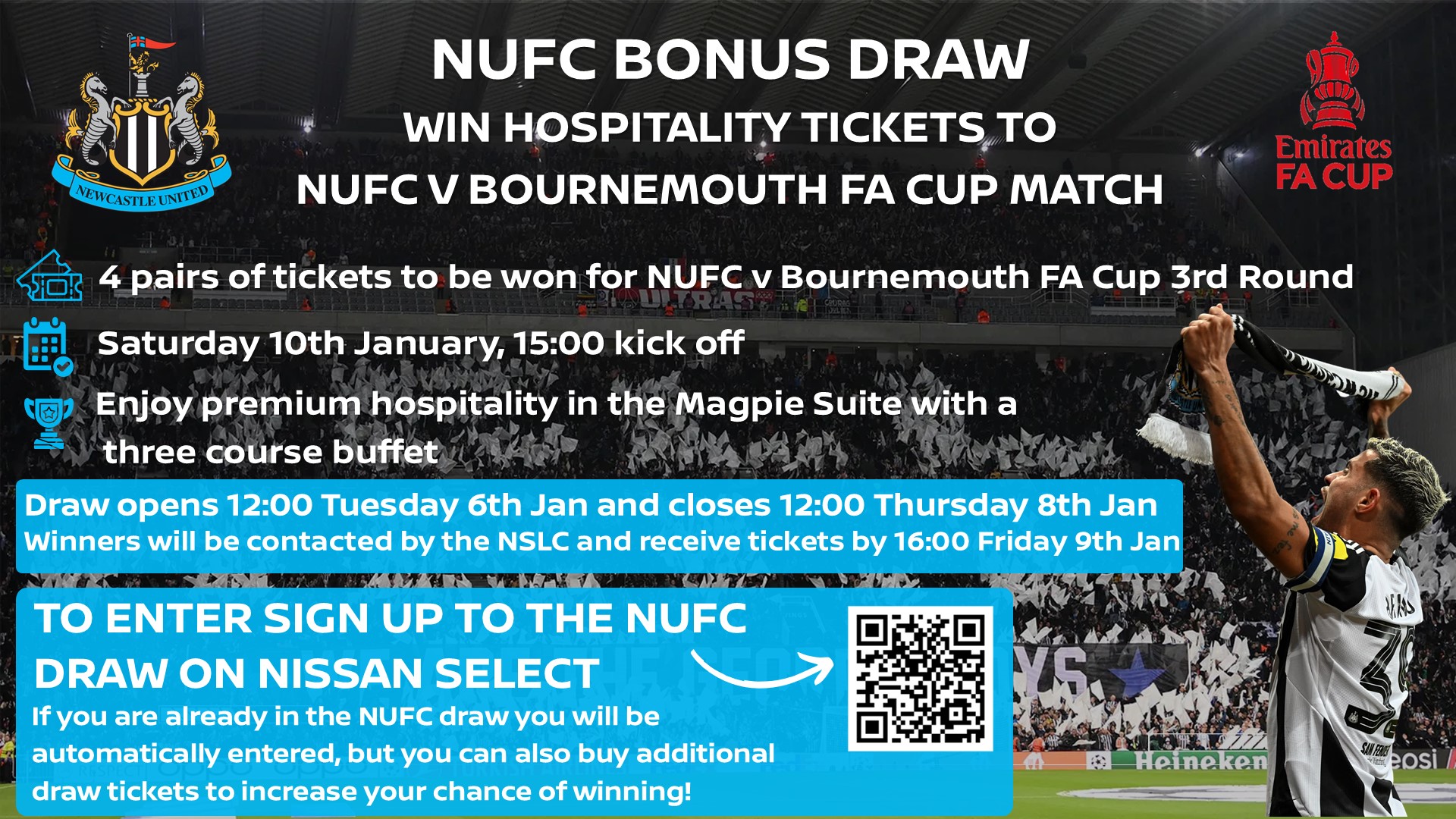 NUFC Bonus Draw - Win Hospitality Tickets to NUFC v Bournemouth FA Cup Match